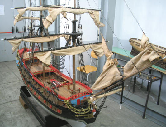 ammirare il modello di una nave risalente al XVIII secolo, interamente